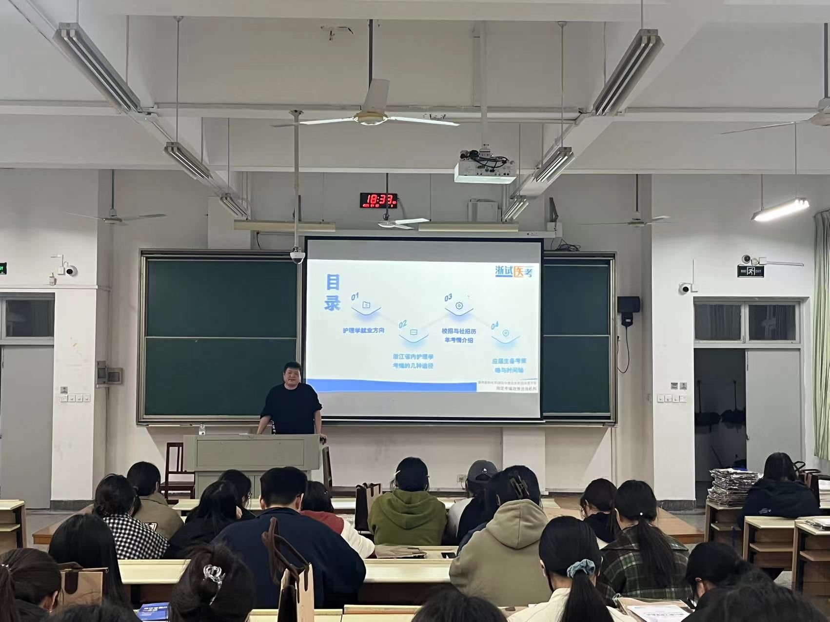 动员会还邀请了护理学考编专业教师来校为同学们做考编讲座,针对护理专业毕业生就业去向分析,帮助学生明确去向目标;讲解护理学专业毕业生考编的途径,提供备考策略和方法,鼓励同学们抓住校招的宝贵机会。