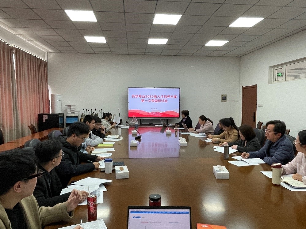 药学系召开2026版药学专业人才培养方案修订专题研讨会。全体药学专业教师围绕培养目标、课程体系、专业特色及国际化发展等议题展开深入研讨。