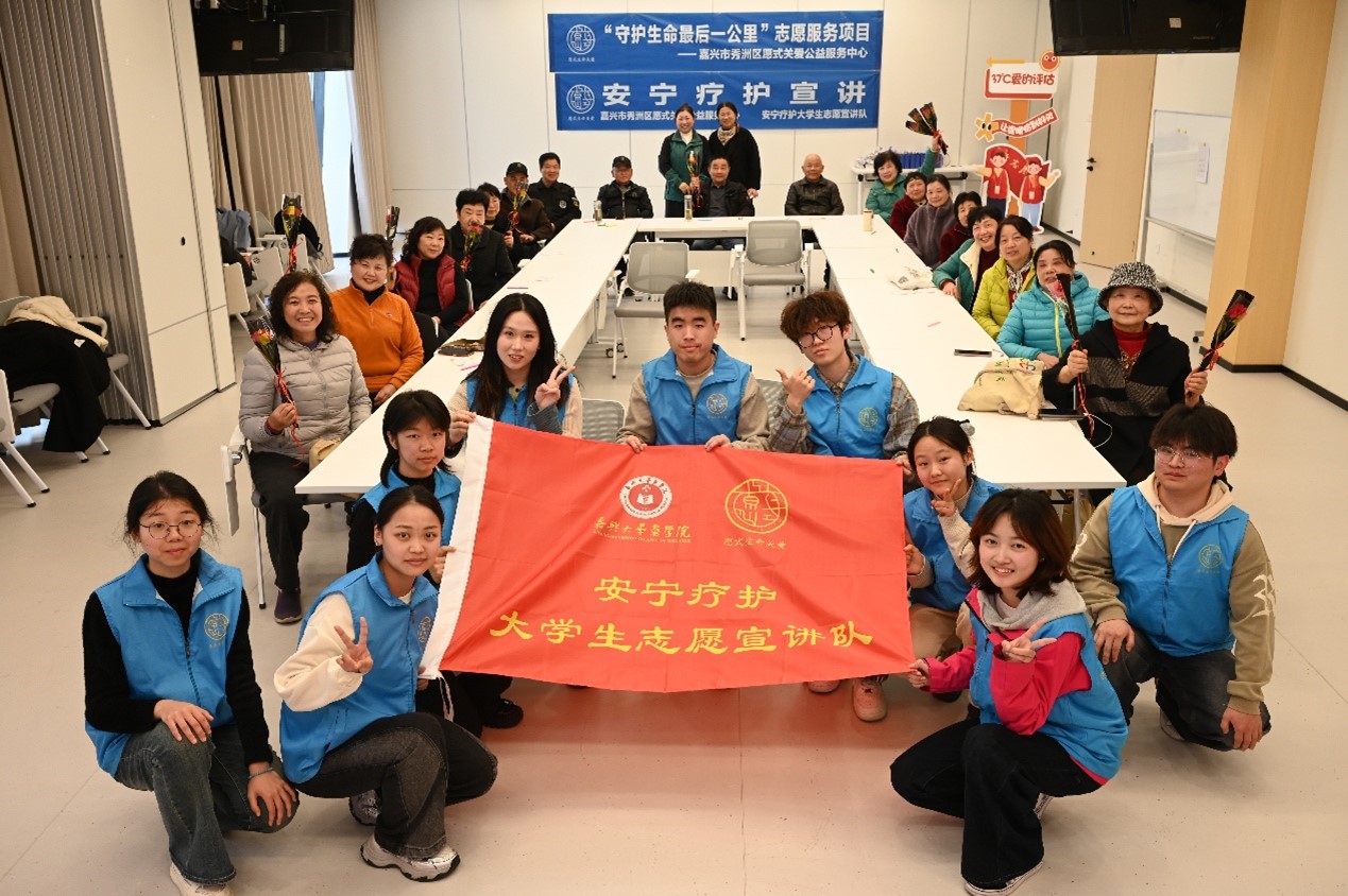 2026年3月21日下午,嘉兴大学安宁疗护志愿者团队走进高照街道秀清社区,开展以“品经典书香,悟五道人生”为主题的安宁疗护科普宣讲活动。大学生科普宣讲团成立于2025年,在省级教学团队“医学人文教学团队”全体教师的指导下,学生通过系统的线上理论学习、线下病房实践,体验式互动学习等形式,系统学习了安宁疗护知识。通过学生的多次演练,完善,结合社区老年人的学习特点,以大家耳熟能详的《西游记》为载体,生动解读“五道人生”——道谢、道爱、道歉、道谅、道愿。从感恩付出、勇敢说爱,到坦诚道歉、学会原谅、大胆说出心愿,每一道都讲得通俗易懂、贴近生活。