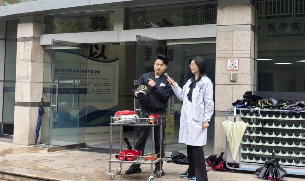 于2026年4月23日中午在医学实验中心(仁术楼)门口广场,成功举办了2026年春季消防安全培训演练。学院共50多名教师、学生参加了本次演练。演练特邀校保卫处丁伟老师、田野老师进行现场专业讲解与操作指导。
